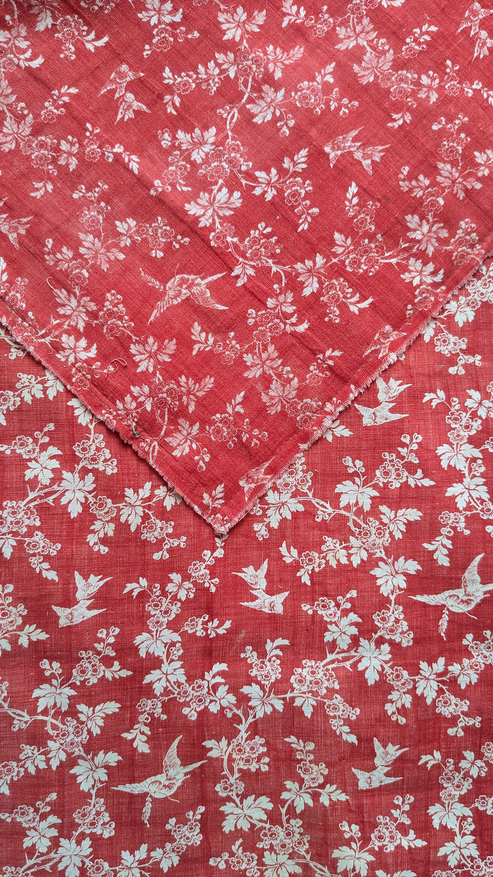 A 19th Century French Cotton Print Fabric Birds & Florals